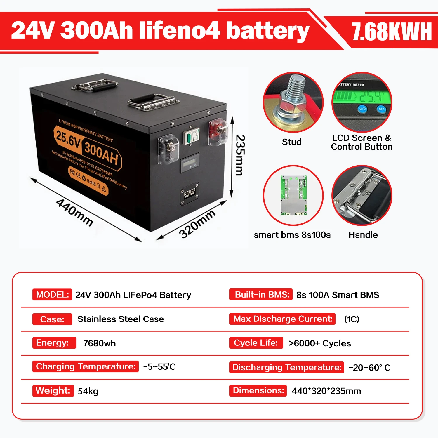 24V 300Ah(7680Wh) LiFePO4 Battery